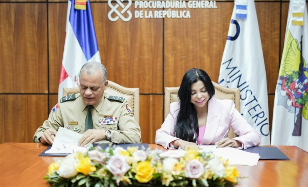 SANTO DOMINGO.-La procuradora general, Yeni Berenice Reynoso, y el ministro de Defensa, Carlos Antonio Fernández Onofre, firmaron un acuerdo para que los talleres textiles de la industria militar confeccionen los uniformes de los agentes de Vigilancia y Tratamiento Penitenciario (VTP).