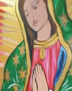 Una pieza central del local es un hermoso dibujo de la Virgen de Guadalupe, que evoca una sensación de hogar y calidez, conectando directamente con el corazón de la comunidad latina en Miami.