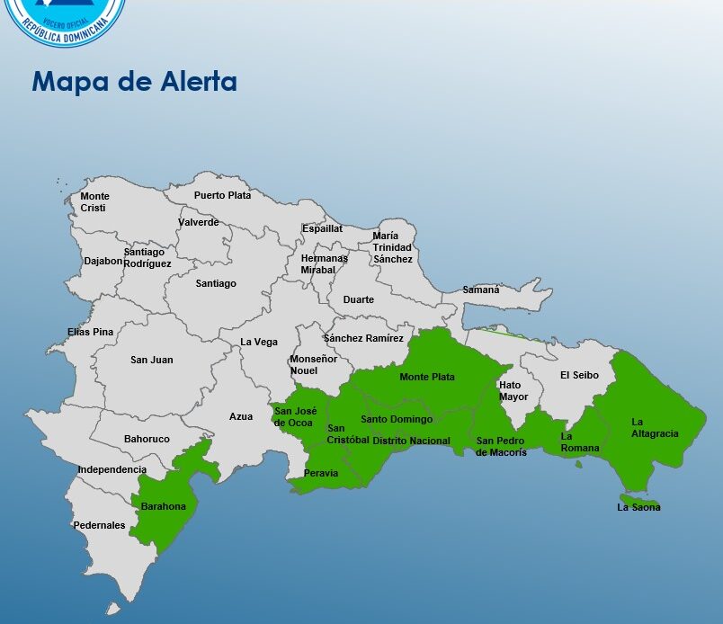 El COE tumbó el nivel de alerta verde para Monseñor Nouel, Montecristi, Dajabón, Pedernales, San Juan, Duarte, Santiago, Bahoruco, Santiago Rodríguez, Independencia, Puerto Plata, Valverde y Azua.