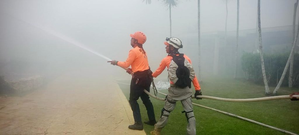 La información fue confirmada por el director ejecutivo de la institución, Juan Salas, quien explicó que el equipo naranja se encontraba allí impartiendo un entrenamiento de “Rescate en Altura” cuando se presentó la situación de emergencia en el área de spa, siendo entonces la Defensa Civil la primera institución en responder.