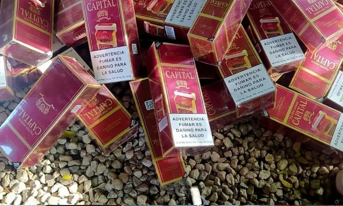 Al ser inspeccionado su equipaje, se le ocupó una maleta marca Tommy Hilfiger, color azul con rayas rojas y blancas, dentro de la cual se encontraron 50 paquetes de cigarrillos marca Capital, de 200 unidades cada uno, para un total de 10,000 unidades.