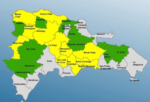 SANTO DOMINGO.- El Centro de Operaciones de Emergencias (COE) amplió el nivel de alerta amarilla para 11 provincias y el Distrito Nacional y 10 en verde.