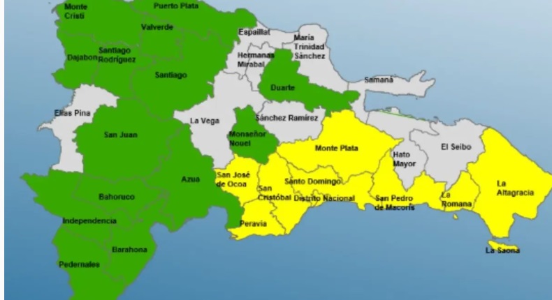Santo Domingo.– El Centro de Operaciones de Emergencias (COE) mantiene ocho provincias y el Distrito Nacional en alerta amarilla y 14 en verde, debido a las lluvias que continúan afectando gran parte del territorio nacional, producto del paso de una onda tropical y la incidencia de una vaguada en los niveles altos de la atmósfera, según informó el Instituto Nacional de Meteorología (INDOMET).