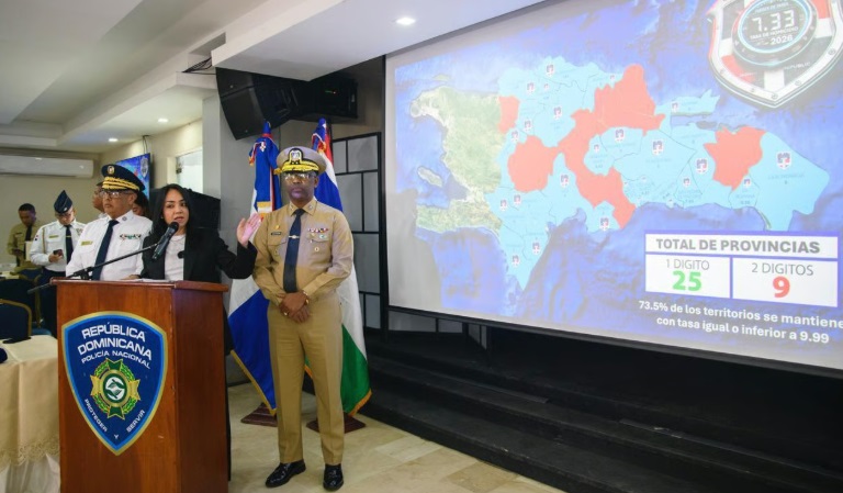 Raful señaló que la tasa acumulada de homicidios se situó en 7.3 por cada 100 mil habitantes, por debajo del 8.42 registrado en 2025 y del 11.48 en 2024. Según el mapa de calor, 25 demarcaciones permanecen por debajo de un dígito, mientras que nueve concentran mayores niveles de incidencia, donde se han reforzado las operaciones policiales.