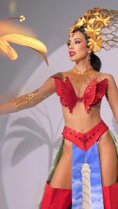 Representando a Santiago de los Caballeros, República Dominicana, Karibel Pérez demostró ser mucho más que un rostro hermoso. A lo largo de la competencia, su elegancia natural se vio reforzada por una presencia escénica poderosa, un discurso con propósito y un compromiso social genuino. Su proyecto en favor de los animales rescatados, en especial gatos abandonados, fue parte del programa “From the Ground Up”, lo que fortaleció su perfil como candidata integral: bella, consciente y solidaria.