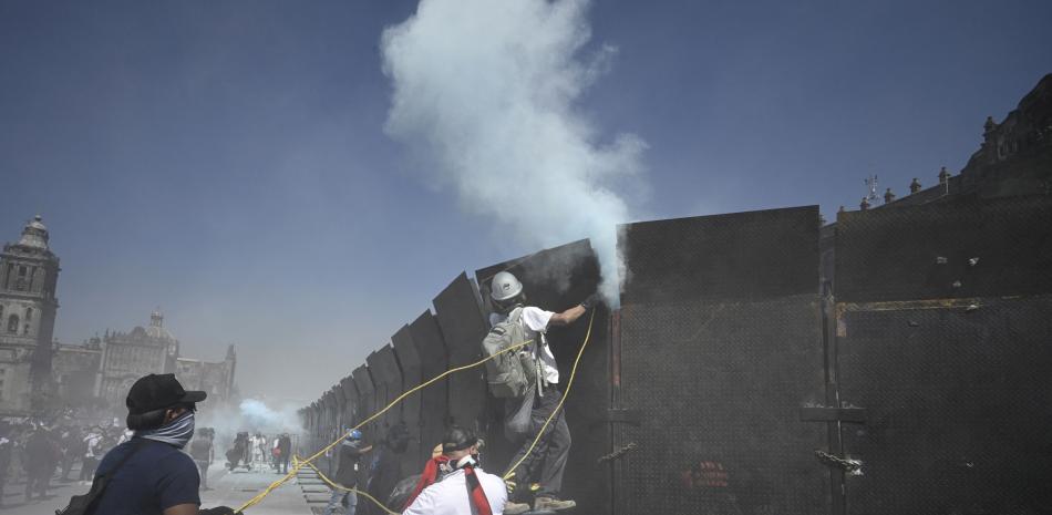 MEXICO (AGENCIAS).-Después de una hora de patear y golpear las vallas metálicas que protegen Palacio Nacional, manifestantes y encapuchados lograron quitarlas al amenazar dar portazo al recinto, que sigue protegido por cientos de elementos de seguridad.