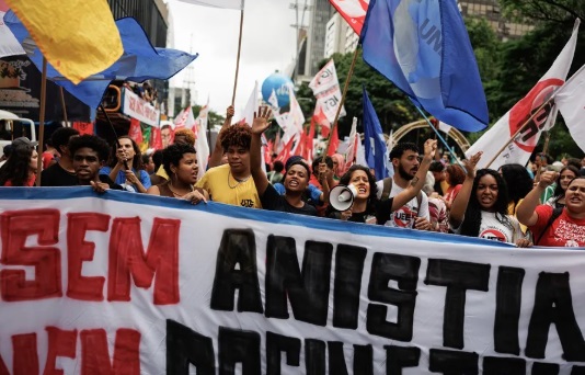 En la capital paulista, el acto central se concentró frente al Museo de Arte de São Paulo (MASP), donde los organizadores desplegaron una bandera con la inscripción «Bolsonaro a la cárcel», junto a una imagen del expresidente entre rejas, y denunciaron el accionar del Poder Legislativo, que prioriza una agenda «lejana» al pueblo en lugar de los temas sociales «urgentes».