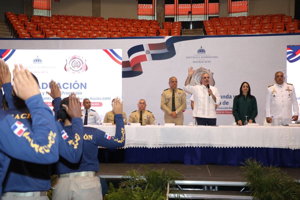 Santo Domingo.– El presidente Luis Abinader juramentó este viernes a 865 nuevos agentes migratorios, quienes apoyarán las labores de control y vigilancia migratoria en todo el país, ampliando la capacidad operativa del Estado y fortaleciendo la presencia institucional en puntos estratégicos.