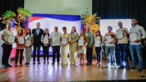 La actividad, celebrada en el Teatro Don Bosco de la Iglesia Salesiana, contó con la presencia del senador Carlos Manuel Gómez, quien dio la bienvenida, y de Lissette Cecilia Reyes, en representación de los beneficiarios. También participaron autoridades provinciales, municipales y representantes de instituciones como Proindustria, ITLA e INABIE.